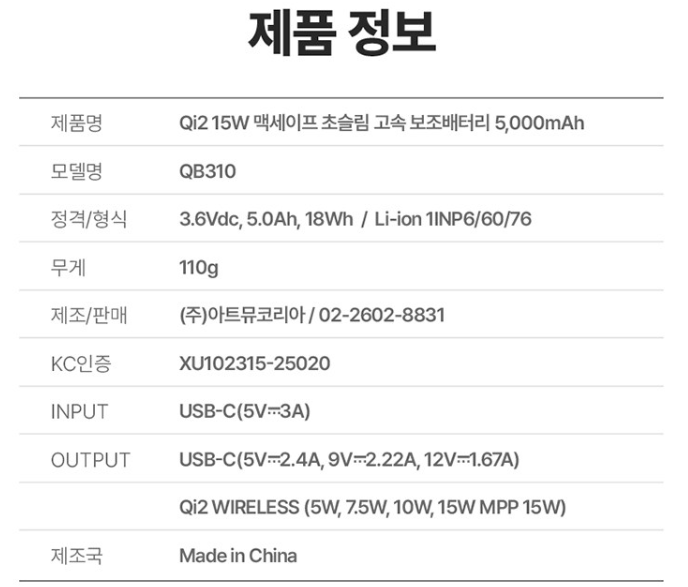아트뮤 Qi2 15W 맥세이프 보조배터리(구매링크)
