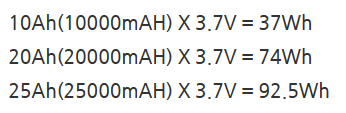3.6V 10,000mAh 보조배터리의 Wh는 (10,000mAh × 3.6V)/1000 = 36Wh입니다.