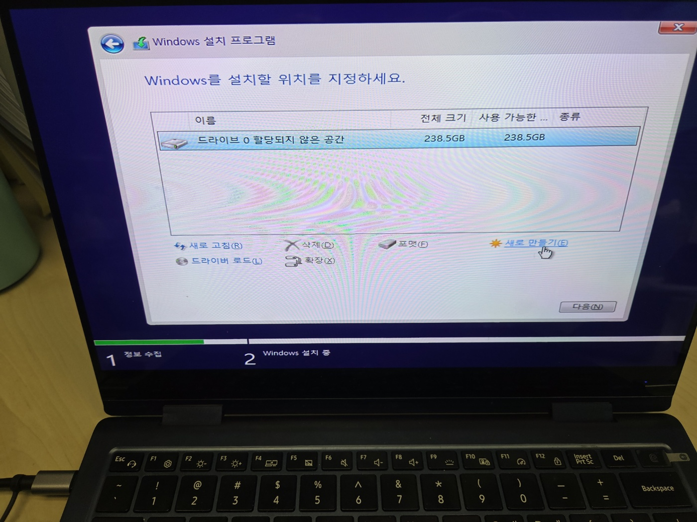 윈도우 설치는 인터넷에 많이 나와있으니 참고하여 설치하였습니다.