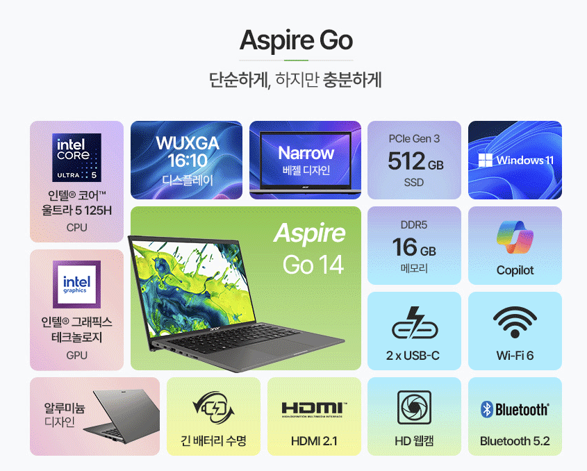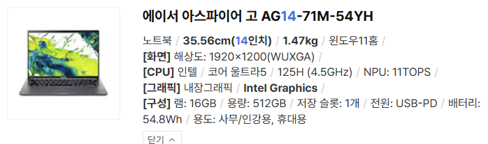 에이서 2025 아스파이어 GO 14 코어Ultra5 인텔 14세대 - 노트북 | 쿠팡