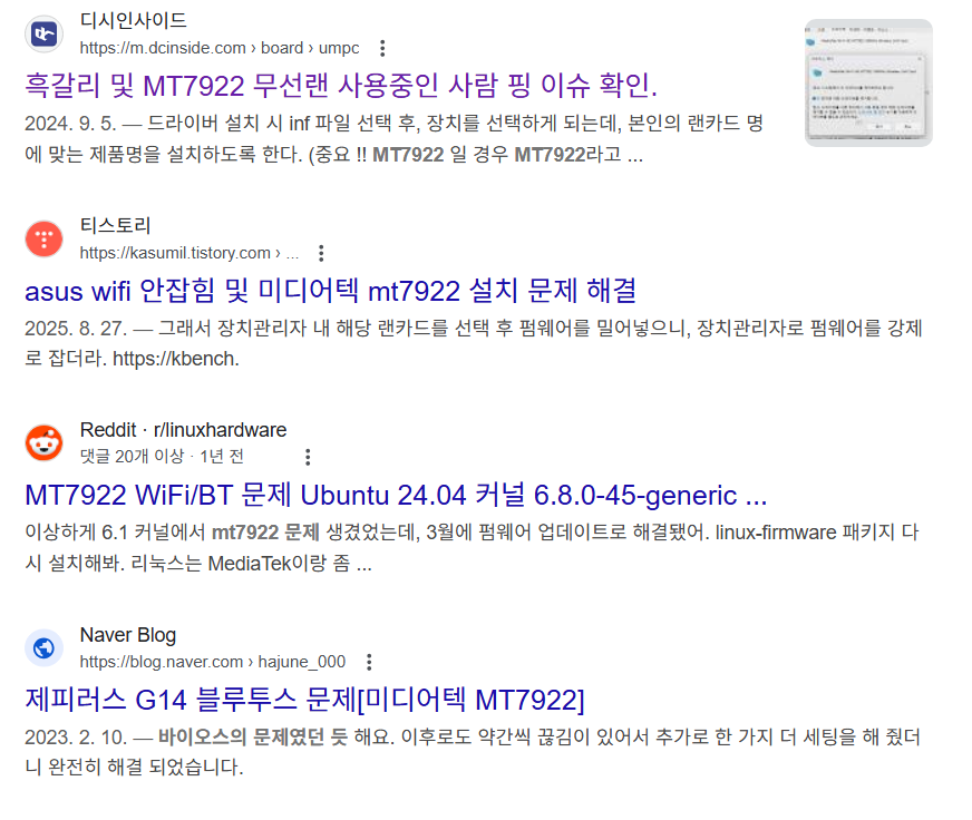 여기에도 미디어텍 무선랜(MT7922)이라서 무선랜을 교체해줬습니다.
