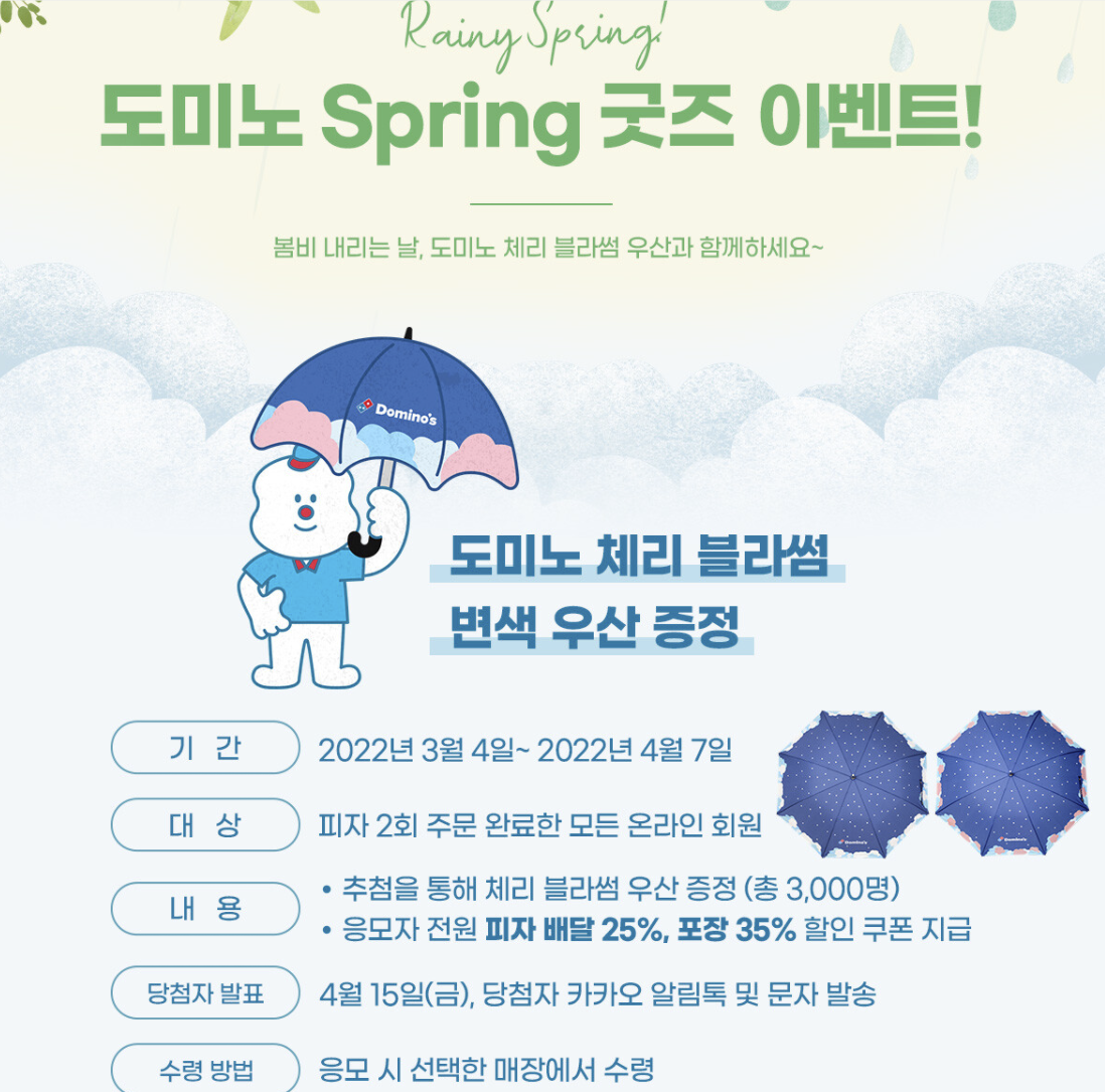 도미노파지에서 체리 블라썸 우산을 추첨으로 증정하는 이벤트를 하고 있습니다.