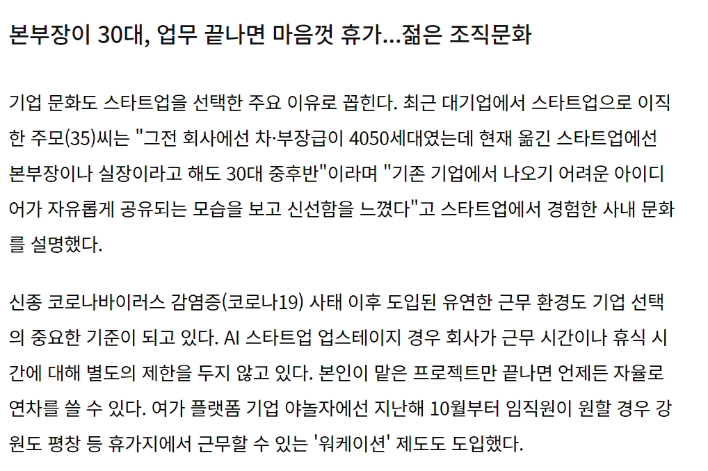 또한 스타트업의 유연한 업무환경도 핫하다고 하는데요.